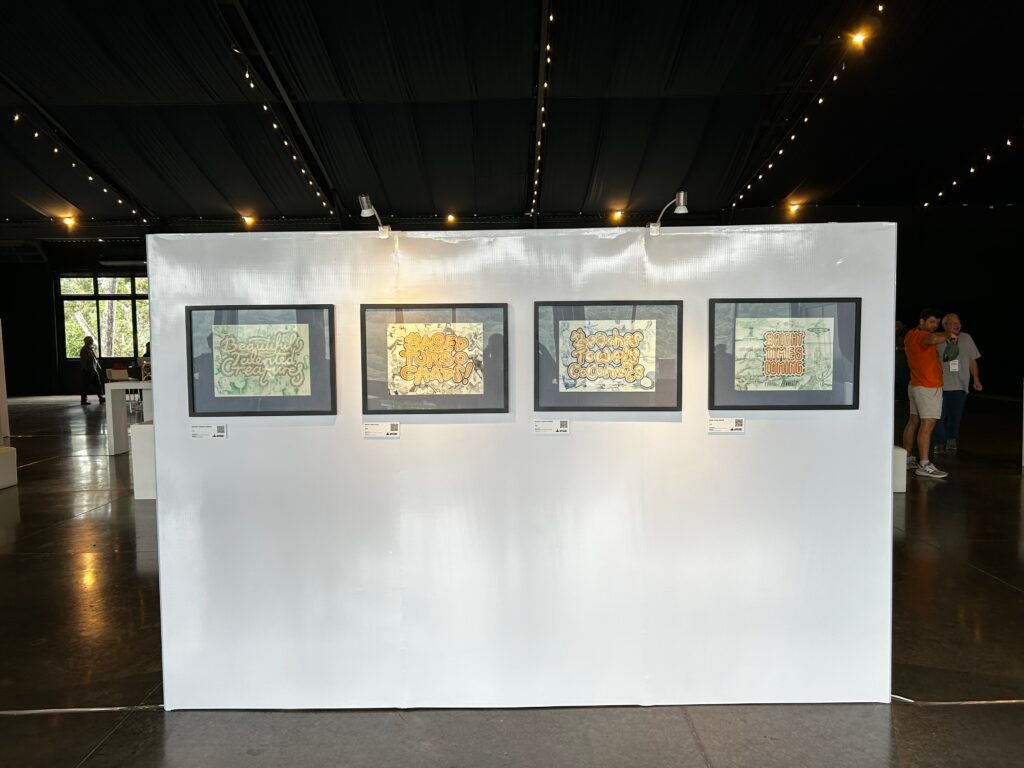 Anik’s debut as a Bitcoin Artist, at an exhibition curated by Fractal Encrypt. This collection of four coloured pencil drawings on watercolour paper reveals his urban art roots, but also hints towards his pleasure for the conceptual in the form of BTC-anagrammed phrases, and his technical skill and attention to detail.